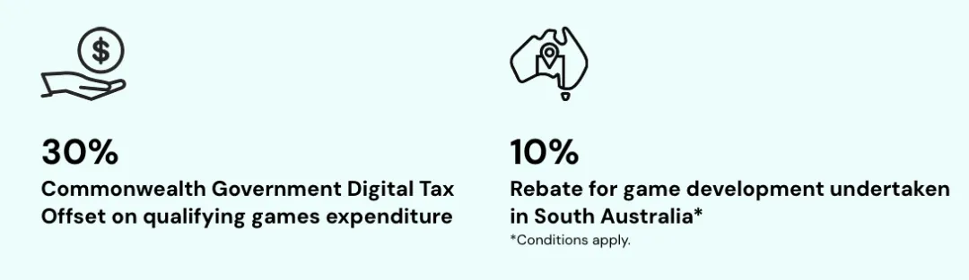 不仅如此,南澳州还推出了南澳州视频游戏开发补贴(SA VGD Rebate)。该补贴允许南澳州游戏工作室在符合条件的情况下获得10%的补贴。同时,这一补贴可与澳大利亚联邦政府提供的30%数字游戏税收抵免叠加使用。