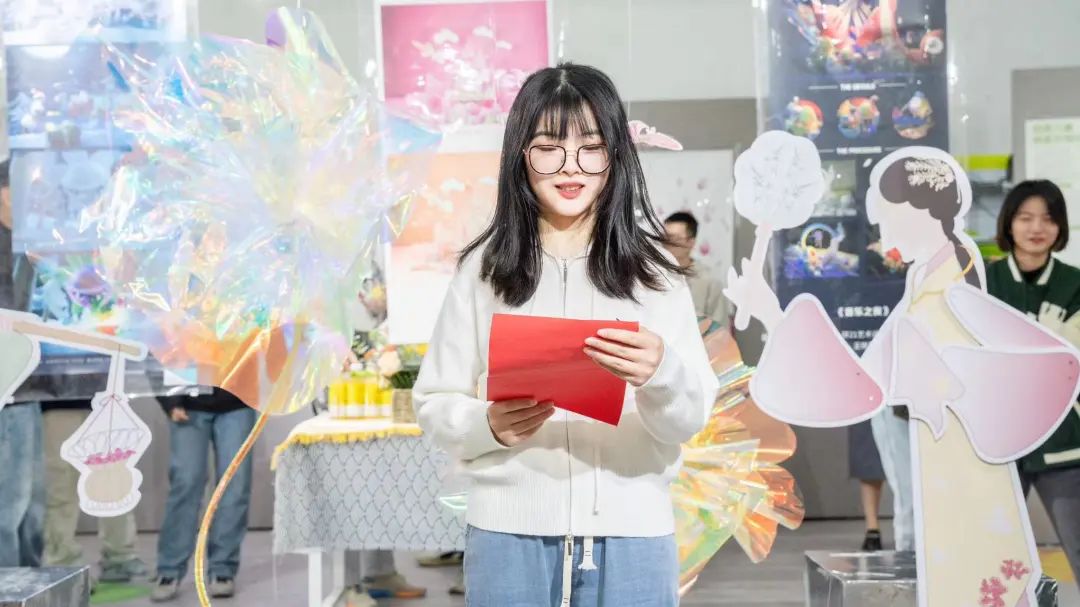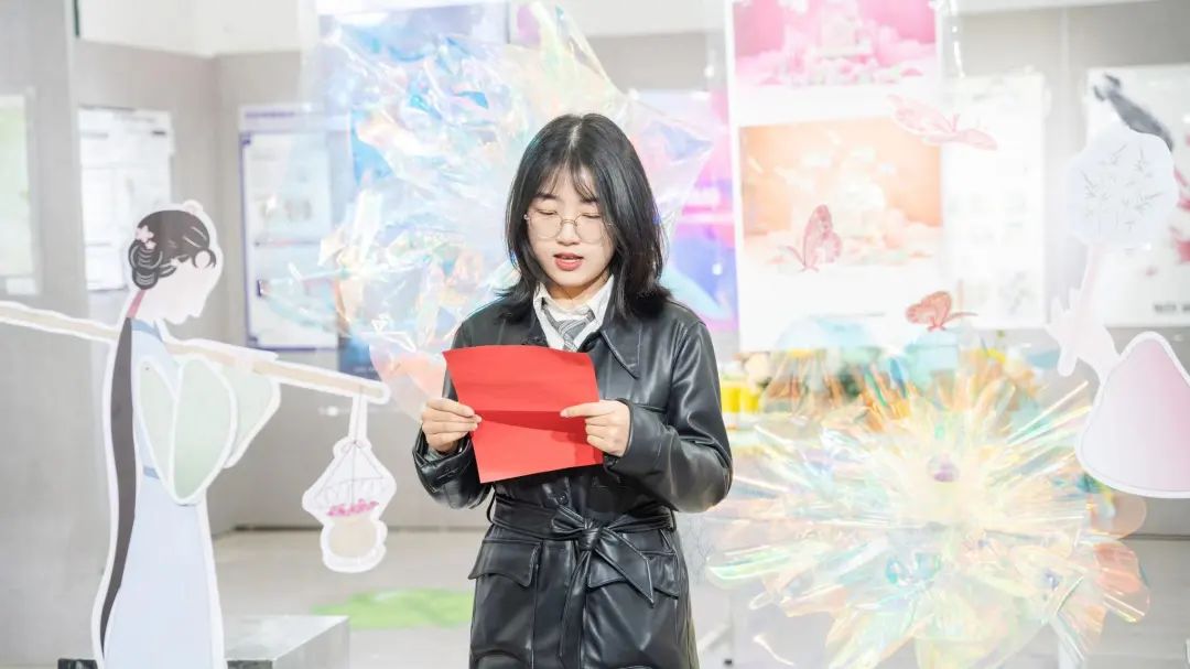 之后,王晓蕾同学的导师陆晓云教授寄语。陆晓云老师表示王晓蕾同学能够坚持不懈的努力学习,同时感谢其他专业老师们对她的指导。希望王晓蕾同学能够继续坚定信念,在艺术探索之路越走越远。最后,艺术学院院长张卫对王晓蕾同学寄语,张卫院长对王晓蕾同学在研究生阶段取得的进步给予了肯定,希望王晓蕾同学在设计中找到自己的乐趣并提出在设计排版还可以再有创新。主持人王子薇总结并宣布展览开幕。