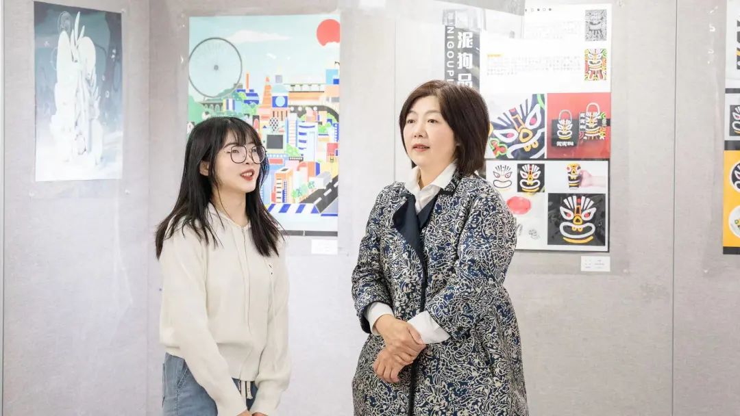 2023年4月24日上午,由南通大学艺术学院教学委员会主办,南通大学艺术学院美术馆、南通大学艺术学院研究生办公室承办的“悦趣而来——王晓蕾设计作品展”于南通大学艺术学院1号楼101开幕。出席本次开幕式的领导嘉宾有:南通大学艺术学院院长张卫,党委书记傅强,党委副书记、副院长沈江,院长助理、艺术设计系主任黄天灵,研究生办公室顾慧老师、杨灿维老师及各专业的师生。研究生王子薇主持开幕式。开幕式伊始,王晓蕾同学致感谢词。首先,她表示研究生在读期间的收获与成长离不开学院领导和老师的厚爱与帮助。其次,她感谢导师陆晓云教授对她学习上的悉心指导,使她不断成长进步。再次,她对于学院能够给予她展示自我的平台表示由衷的感谢。本次展览是王晓蕾在研究生期间的一次阶段性汇报,王晓蕾同学尝试了多种设计形式,也让她对专业知识有了更深的体悟,在众多老师的帮助下不断的探索与实践,不断学习新知识、新软件,设计能力提高的同时也收获了人生的成长。