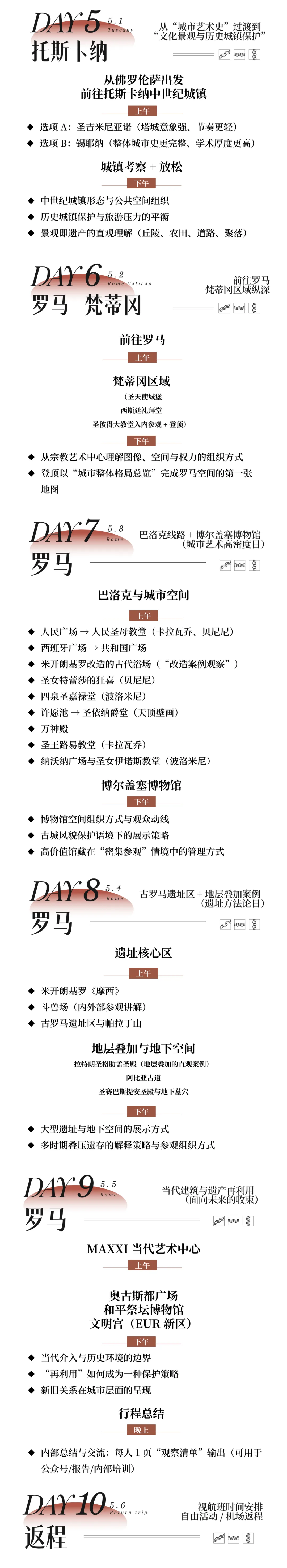 本次行程以佛罗伦萨与罗马为核心,聚焦文化遗产的保护、修复与活化实践,通过专家导览、实地考察与互动体验,开启一场跨越时空的智慧碰撞。