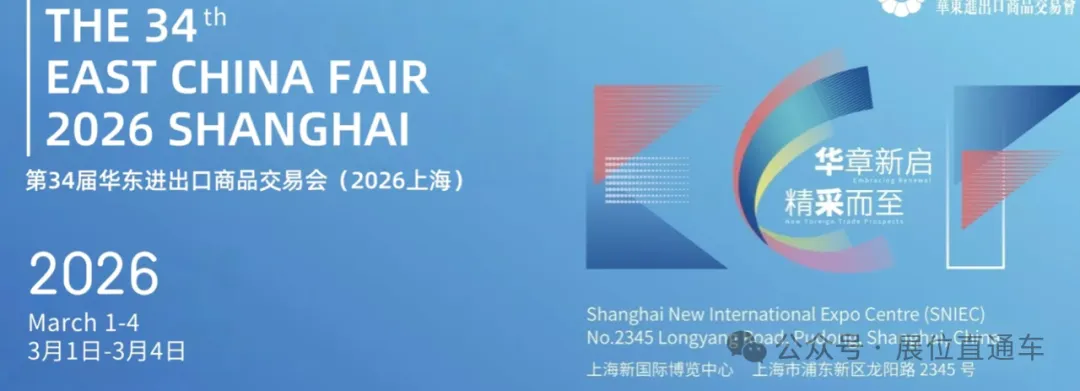 2026年第34届华东进出口商品交易会(简称上海华交会)将于2026年3月1日至4日在上海新国际博览中心举办。作为开年首个区域性国际经贸盛会,华交会素有中国“外贸新春第一展”之称。