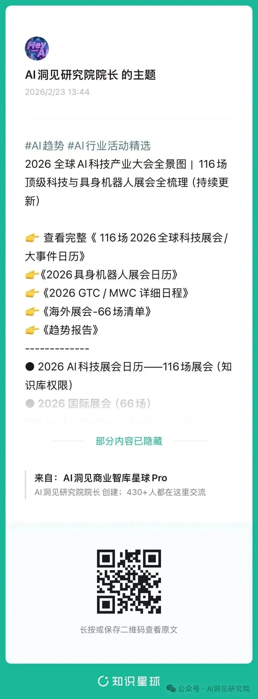 ● 2026 AI科技展会日历——116场展会(知识库权限)