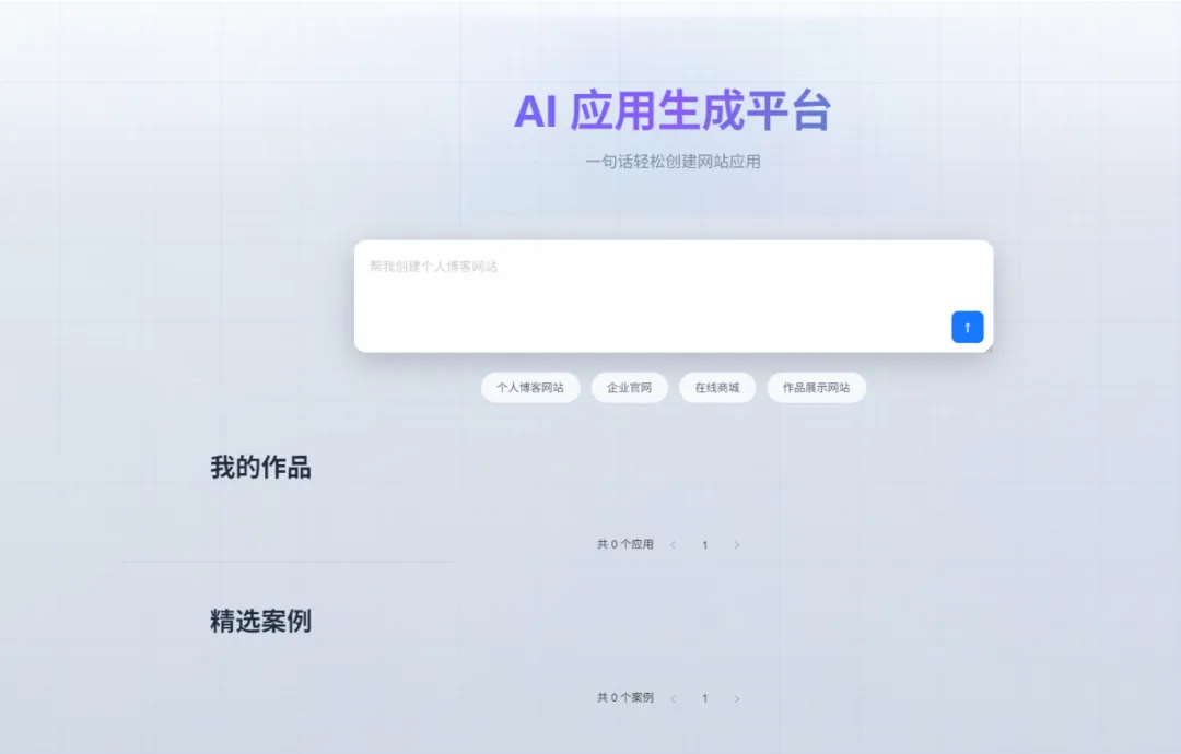 AI 代码生成平台是一个企业级的智能代码生成系统,通过 AI 技术帮助用户快速生成 Web 应用代码。用户只需输入自然语言需求,系统即可自动生成完整的 HTML 页面或多文件项目代码,并支持实时预览、对话式编辑和一键部署。