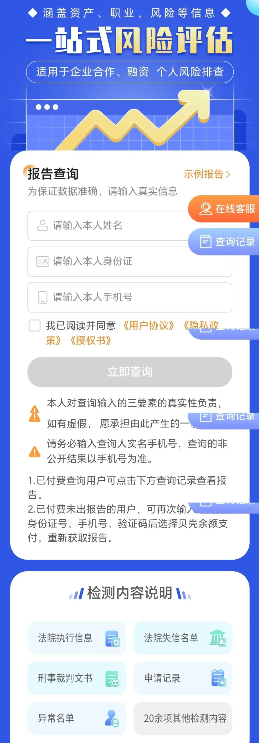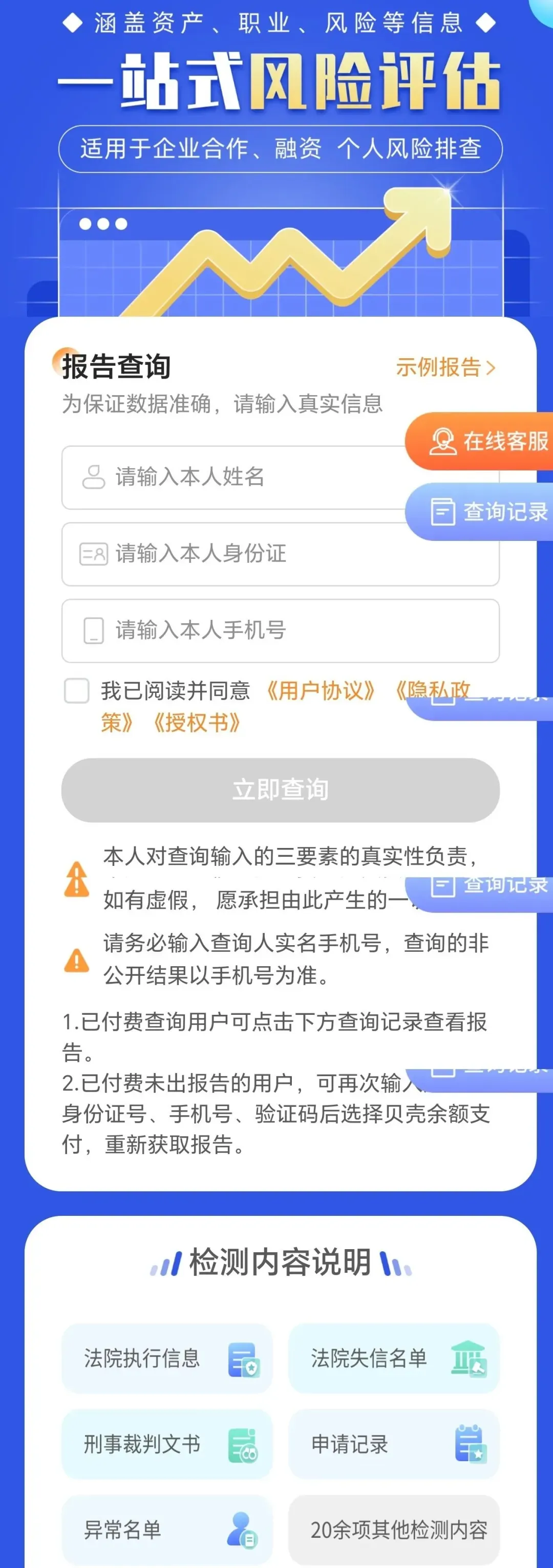 ③填写真实三要素:名字、身份证、手机号,立即查询;