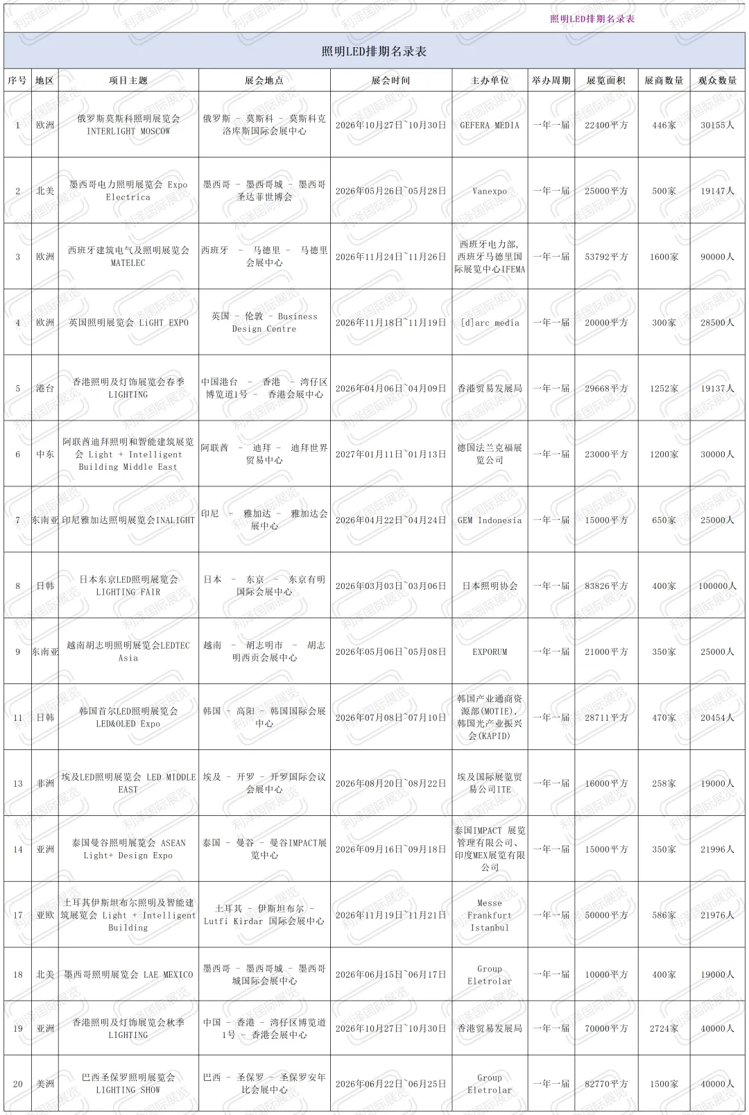 照明展会排期表