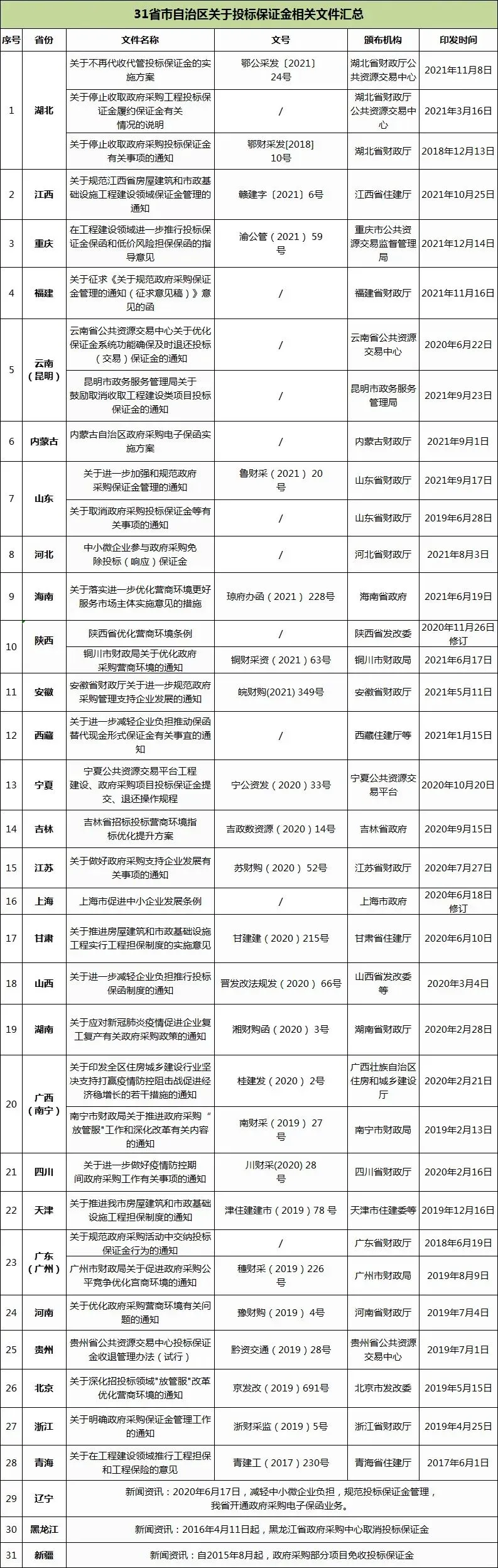 全国各省市出台的保证金相关政策汇总