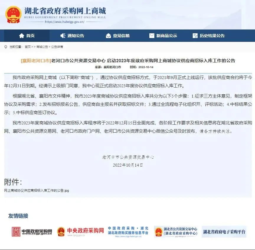 老河口市启动2023年度政府采购网上商城协议供应商招标入库工作