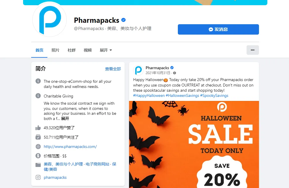 Pharmapacks最后一条facebook消息推送时间为2021年10月31日
