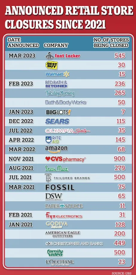 自 2021 年以来,Target、Best Buy、Sears、Foot Locker 和 CVS 等主要品牌的近5,000 家店面已经在全国范围内关闭,投资银行瑞银预计到2027年将有 50,000 家商店关闭。