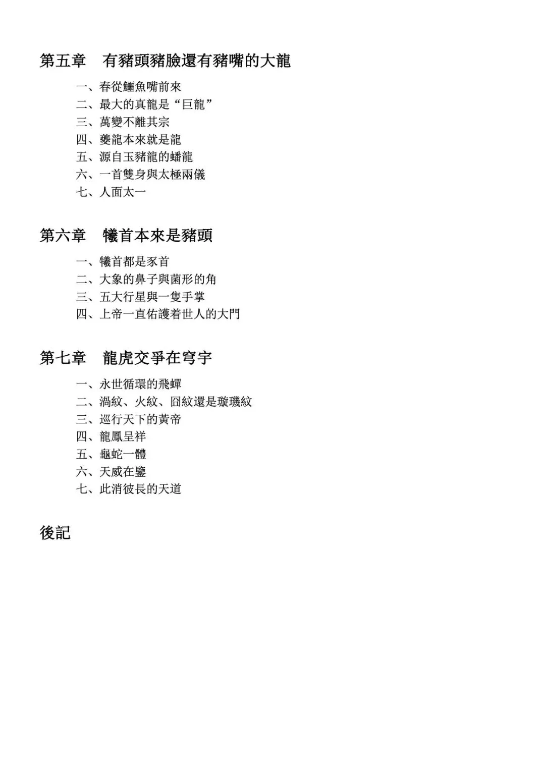 這本書雖然不能說百分之百地解析了商及西周前期青銅紋飾的所有內容,但確實涵蓋了其絕大部分構圖形式,衹是無法展延開來逐一細說而已。相信讀者衹要理解我的基本解讀,特別是把握敝人的論證邏輯,就能夠舉一反三,認識到同類圖像的內涵(當然,那些主要起裝飾作用的紋飾除外)。至於書中未能觸及的個別可能具有某種特別寓意的紋飾,本書若有機會再版,我爭取在增訂本中再加以闡釋。