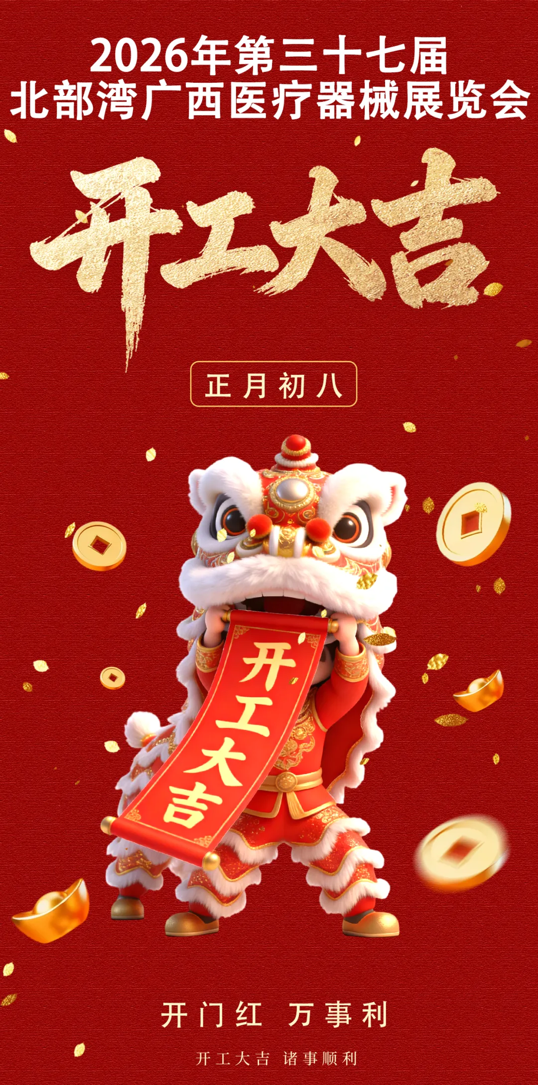 2026年第三十七届北部湾广西医疗器械展览会--大年初八,开工大吉!今天是大年初八 也是马年开工第一天 广西医博会祝您 开工大吉,诸事顺利!