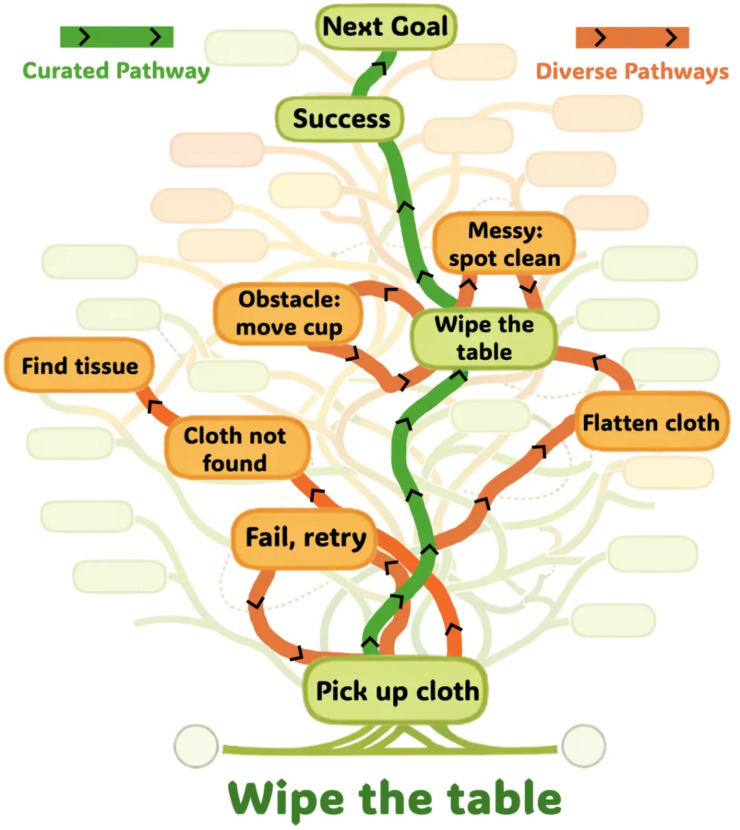 这一突破的背后,是千寻智能在技术路径上的长期深耕。千寻智能联合创始人高阳表示:“我们坚持‘数据金字塔’训练理念,在预训练阶段没有走传统‘世界模型’预测每一帧的老路——那条路算力消耗巨大且效率不高。我们选择基于海量人类互联网视频进行预训练,在更少参数量下实现更好效果,显著降低算力成本。”