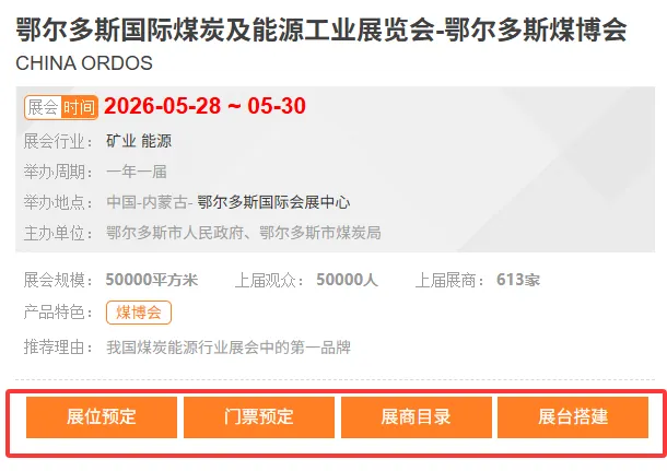 鄂尔多斯国际煤炭及能源工业展览会-鄂尔多斯煤博会CHINA ORDOS【展位预定、门票预定、展商目录、展台搭建、差旅行程、签证、翻译、物流运输、补贴申报】
