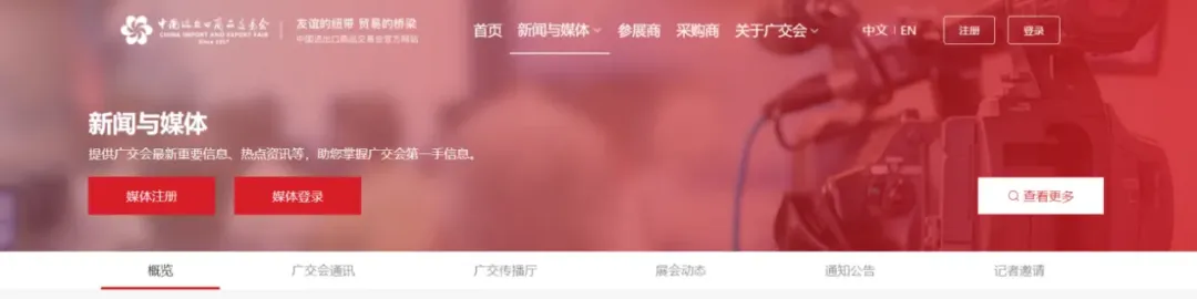 ?官网导航:访问广交会官网,在 “新闻与媒体” 板块找到 “媒体注册” 按钮。