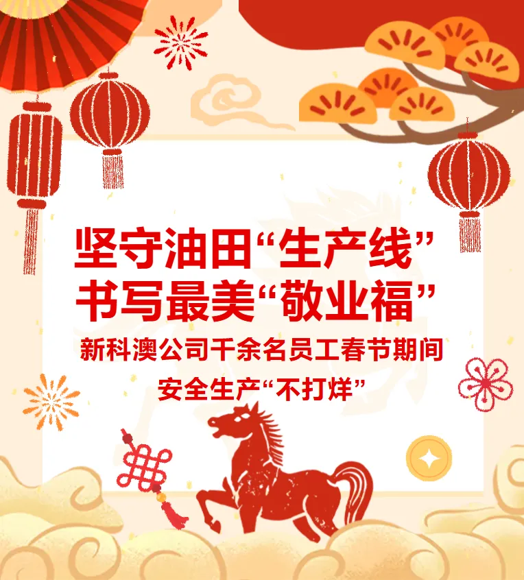 在举国欢庆2026丙午马年到来之际,在新疆天山南北方圆千里的各油区生产现场,新科澳公司23个项目部的千余名员工和1200台(组)各型生产保障车辆,仍然默默坚守岗位,严格落实春节期间值班值守要求,强化生产组织,狠抓安全管理,日夜奋战在各油气生产一线“不打烊”,以实际行动“牢牢端稳油田技术服务的饭碗”,确保了节日期间安全生产平稳有序运行,度过一个喜气祥和的新春佳节。