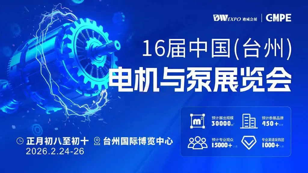 2026第16届中国(台州)电机与泵展览会今日开幕,2月24日-26日为期3天邀您相约台州国际博览中心!
