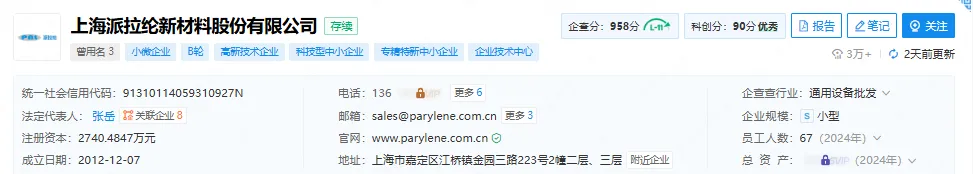 能持续获得资本认可,核心在于派拉纶自身过硬的综合实力和广阔的市场前景。作为一家以Parylene、UV三防等特殊涂层材料和技术服务为主业的材料综合服务商,派拉纶自2012年成立以来,始终专注于特殊涂层领域的深耕细作,凭借强大的技术研发能力和完善的生产体系,在行业内树立了良好的品牌形象。公司配备了十万级、万级、千级的洁净厂房,通过了ISO9001、ISO13485等一系列体系认证,构建了从基础材料研发合成、设备制作、涂层加工到材料销售的完整生态链,在Parylene等特殊涂层领域拥有强大的开发能力和成熟稳定的生产工艺,可实现对各类产品的精准涂层加工,满足不同行业的高端需求。