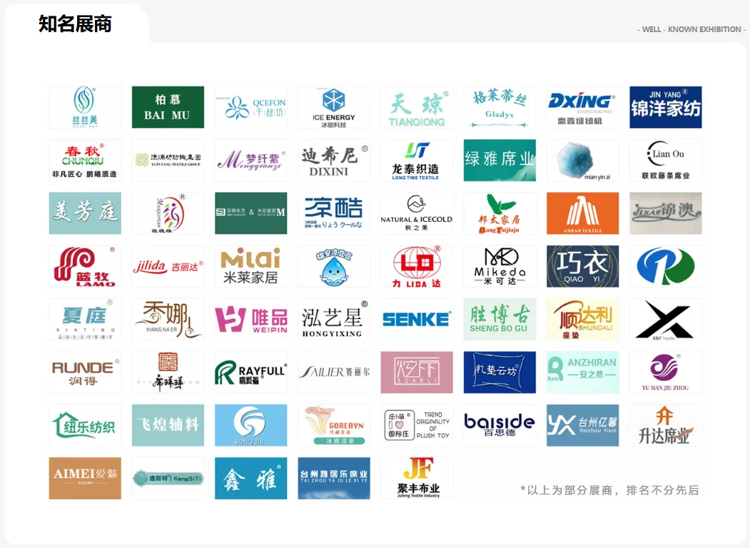 家纺配套区:展出蚊帐、空调被、四件套等床上用品,以及凉席面料、家纺面料等基础原材料。