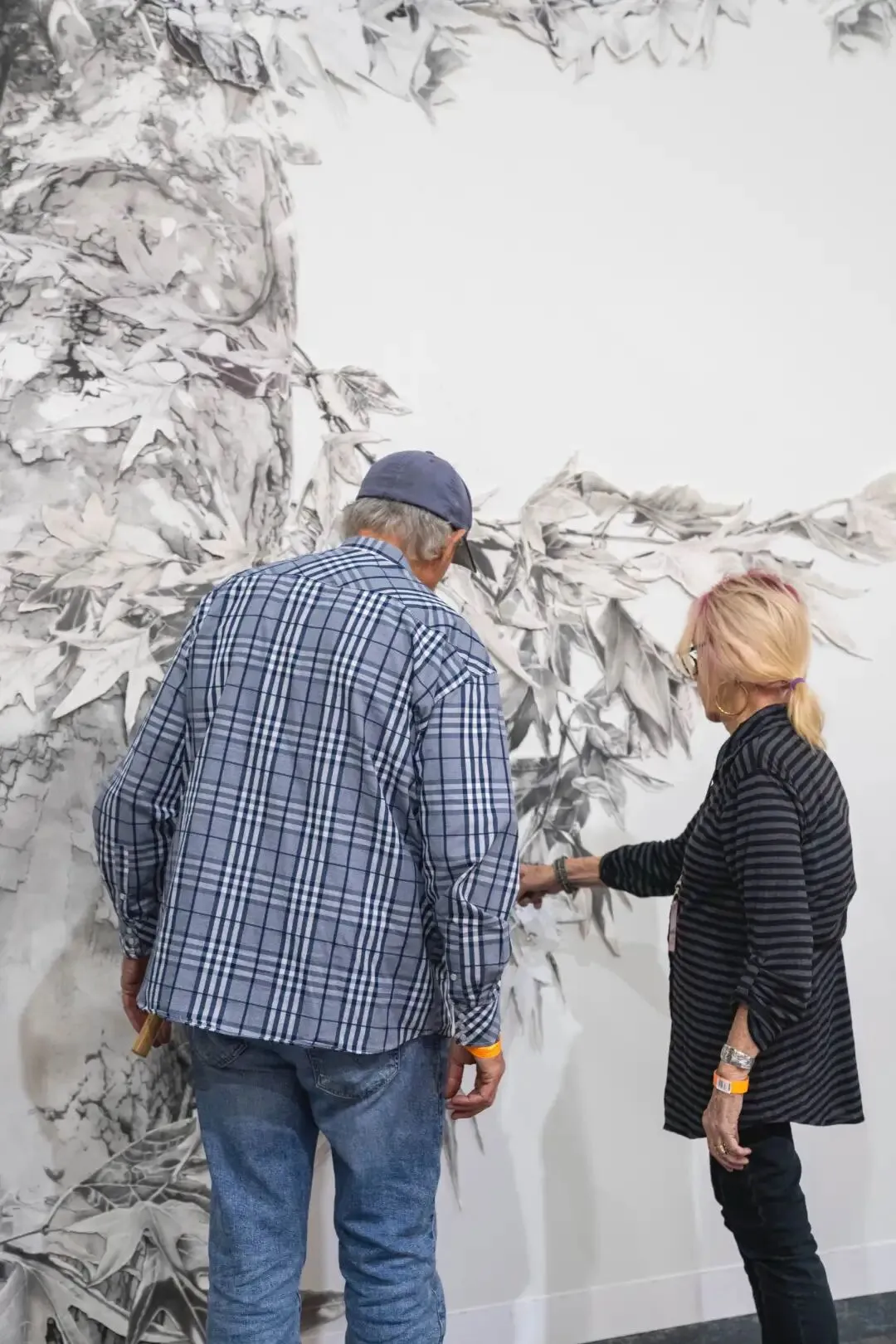 展会期间,Yiwei Gallery 于入口墙面呈现艺术家凯瑟琳·鲁安 (Catherine Ruane ) 的大型场域特定装置《见证树》(Witness Tree)。