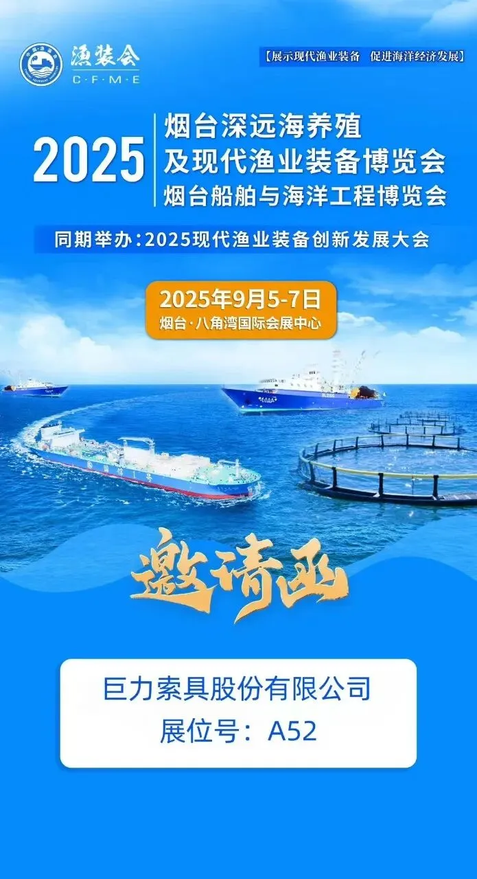作为索具行业的领军企业,巨力索具将亮相本届展会,诚邀业界同仁、合作伙伴与广大客户莅临展位,共同探讨深远海养殖与海洋装备的前沿技术与发展趋势,携手迈向海洋经济新蓝海。