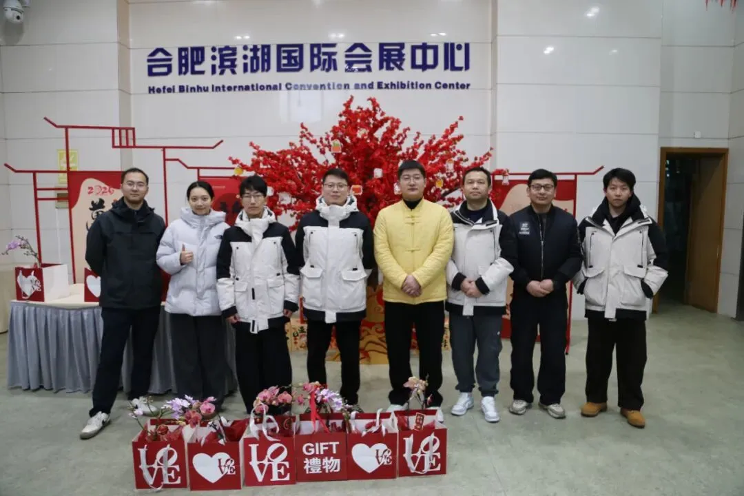 当日清晨,年味尚未散尽,政文会展办公楼一楼大厅已暖意融融。公司领导班子及各部门部长提前到岗,于7:50前在大厅整齐列队,面带笑意等候全体员工的到来。8:00起,伴手礼发放正式开始,全体员工有序入场,逐一领取这份承载着集团荣誉、企业关怀与新春祝福的开工好礼。