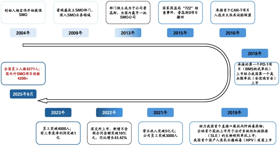 普蕊斯自2009年以来,高度聚焦于SMO(现场管理组织)业务,通过构建超过280份SOP的标准化质量体系、积累承接超4200个国内外项目的丰富经验、搭建覆盖全国超200个城市及960余家机构的执行网络,铸就了深厚的护城河,并已发展成为SMO龙头企业。我们认为公司正充分受益于临床试验需求增长、行业集中度提升与智能化技术赋能的多重趋势,有望实现中长周期内下的持续成长。