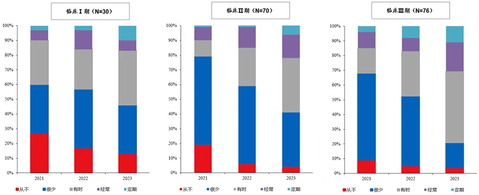 在实际落地环节,SMO的重要性正得到越来越多的认可。近年来,企业SMO利用率呈现显著上升趋势。根据LEK的企业调研数据,CRO的赞助商自2021年以来已加大对SMO的使用力度,尤其是在后期阶段的试验中。以临床Ⅲ期为例,2021年有15%的受访者“经常”或“定期”使用SMO,而到2023年这一数据翻倍增长至31%。