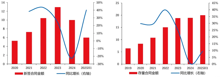 公司新签订单量从2023年的12.92亿元下滑至2024年的10亿元,但随着客户的不断拓展,未来仍有望回归增长趋势。截至2025年6月,公司存量合同金额已达19.98亿元,将为公司持续贡献收入和利润,并为公司订单量持续增长注入新活力。