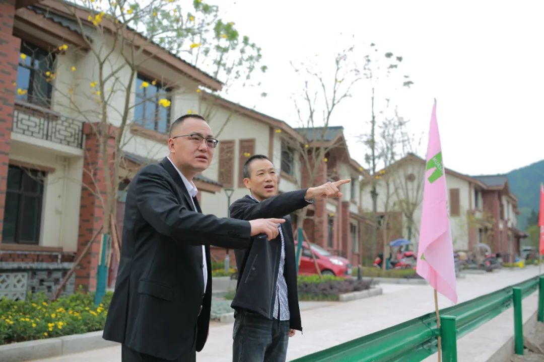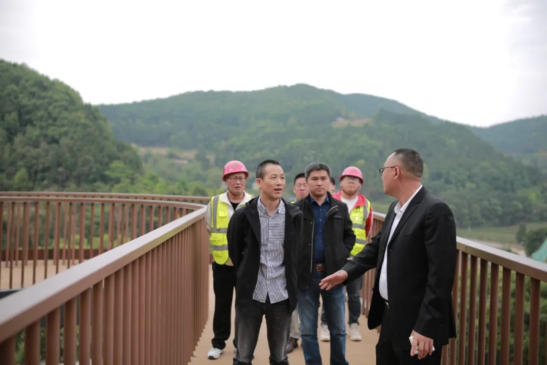 孟军一行实地考察了三岔口广场、一号安置点、党群服务中心、瞭望台以及游客中心(红飘带)。项目部项目生产情况、商务情况、财务情况、业主单位收付款情况进行了重点汇报。