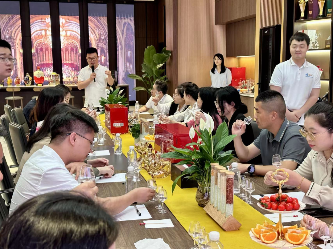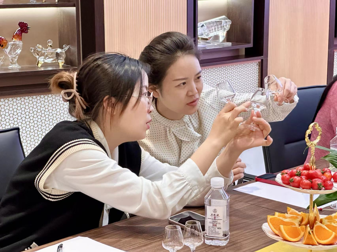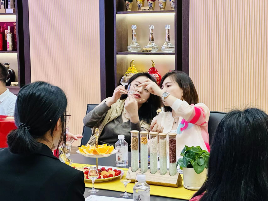 五粮液集团公司是一家以酒业为核心,涉及智能制造、食品包装、现代物流、金融投资、健康产业等领域的特大型国有企业集团。其主导产品五粮液酒历史悠久,文化底蕴深厚,是中国浓香型白酒的典型代表与著名民族品牌。五粮液文化体验店主要集中展示五粮液历史文化、酿造工艺、全品类产品,让客户在这里感受到五粮液的历史文化和品牌价值,同时定期举办各种活动,如五粮液文化讲座、品鉴会、老酒鉴别等活动,是五粮液以酒会友的文化传播阵地。五粮液文化体验馆不仅是对五粮液“和美”文化的传承与表达,更是将进一步加强消费者与品牌的链接,进而促使消费者深度感知五粮液“和美”文化的内涵所在。以文化赋能的形式,助力五粮液 “持续奔跑”。在工作人员的讲解下,泰祺校友们了解了五粮液的历史和文化底蕴。五粮液产自四川省宜宾市,始于唐,兴于宋,成于明,得名于清。五粮液酒质高雅细腻,醇香浓郁。五粮液酒制造工艺独特,从选料、发酵、蒸馏到陈酿,每一步都必须准确无误。五粮液集团在生产过程中融合了现代化科技,不断研发新的酿酒工艺,让五粮液在品质上更上一层楼。品酒环节是泰祺校友们最期待的部分。五粮液文化体验馆提供了专业的品酒环境,经过徐国华同学的讲解和引导,从静心观色到平心闻香,再到沉心品味,最后用心悟格。泰祺校友们品尝了第四代五粮液、第八代五粮液、五粮韵、小五粮,四种不同口感的五粮液酒。品酒过程中,大家畅谈感受,不断探讨五粮液酒的独特韵味。