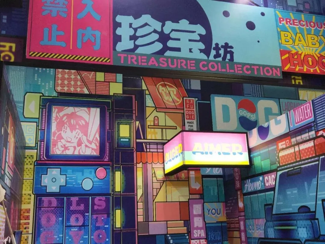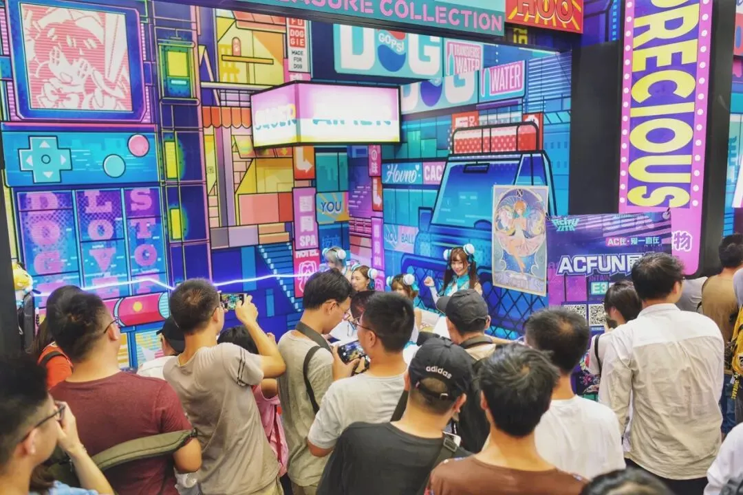 说完周边再来说说展台,说实在的,这次展位多的像迷宫一样,有大有小风格各异,但给我印象最深刻的,还是E3的acfun,不但风格非常赛博朋克,而且细节异常地多,随便走两步就有新的发现,最喜欢的是一个展板上的小窗户,还以为里面是有什么活动,往里一看才发现是一只电击猴233可惜的就是不能走进去拍照,有点可惜。