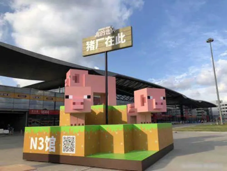 不过要说吸睛程度,还是要说说网易,网易的“猪厂在此”的告示牌在CJ第一天刷爆了朋友圈!感觉是既用网易猪场厂的名字自嘲,又为《我的世界》做了一波宣传。