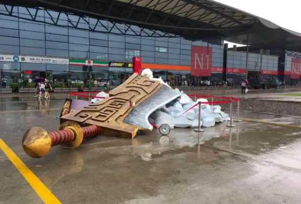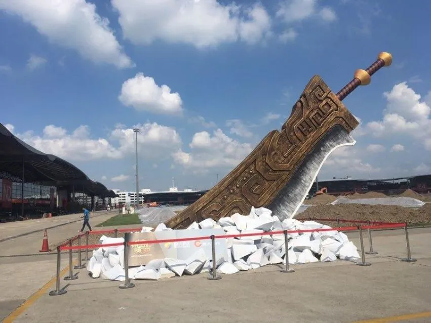 《传奇世界3D》那边还竖起了巨大的“屠龙刀”,巨大精致的刀身看起来颇有气势,虽然刀在第二天就被风吹断了,但也吸引了不少看客的眼球。