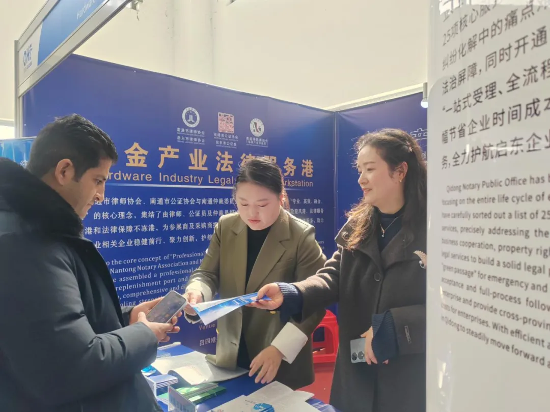 在南通市司法局有力指导下,启东市司法局提前谋划、主动靠前,将法律服务深度嵌入展会筹备、举办全周期,构建起全方位、无死角的展会法治服务保障体系。