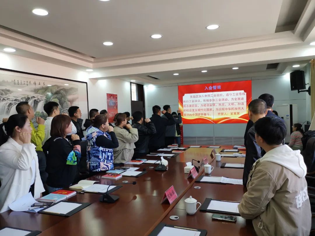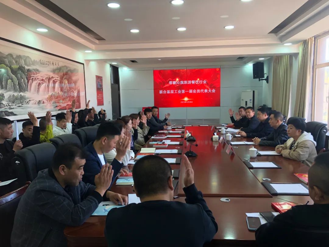经企业会员推荐,旗总工会和旗市场监督管理局工会综合考量,采用举手表决方式选举出了喀喇沁旗旅游餐饮行业联合基层工会第一届委员会、工会主席、副主席、经审主任和女工主任。37名参会代表在新任工会主席的带领下宣读了入会誓词。