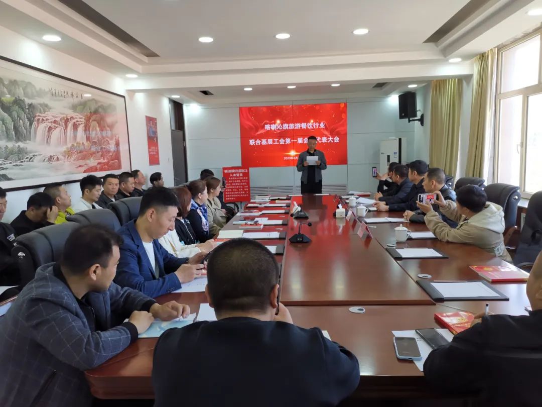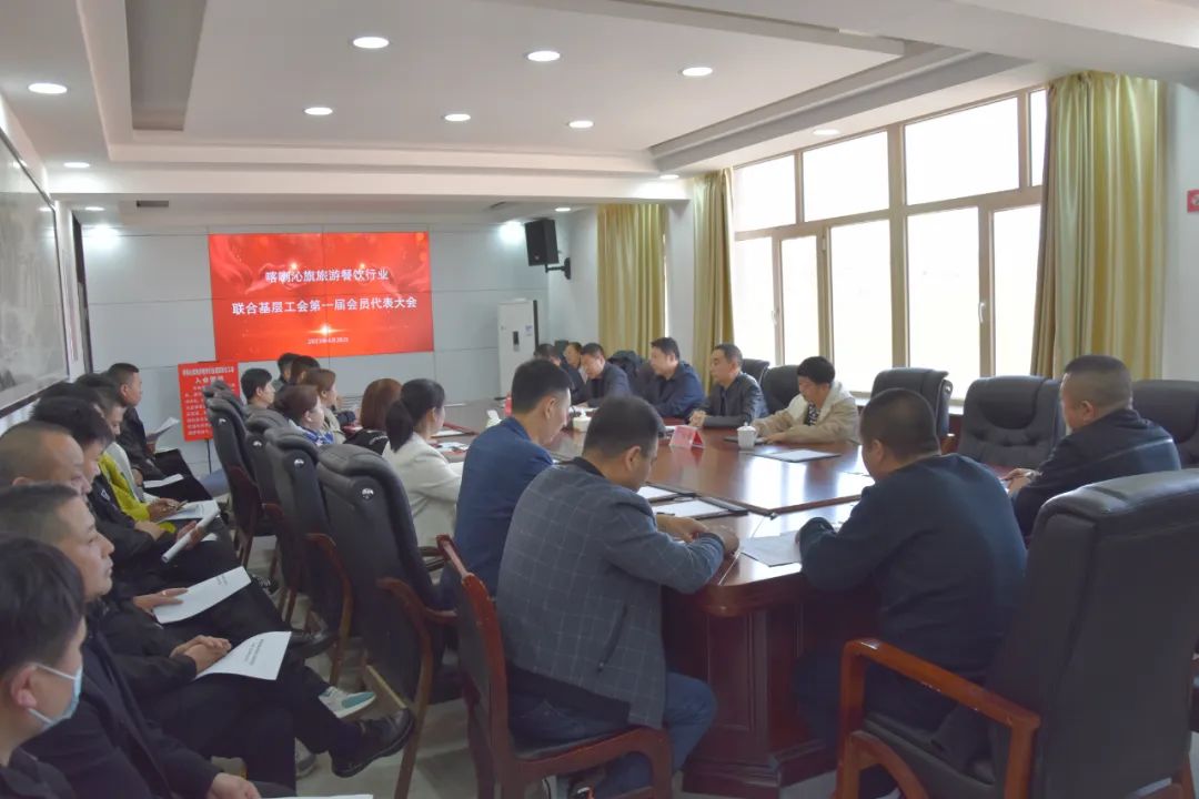 按照“旗县级工会加强年”专项工作中推进旗县内区域性、行业性工会联合会建设工作要求,经过一个多月的摸排和筹备,4月26日上午,旗总工会在旗市场监督管理局的大力支持下,喀喇沁旗旅游餐饮行业联合基层工会第一届会员代表大会顺利召开,旗总工会相关负责人、旗市场监督管理局工会负责人和旅游餐饮行业37名代表参加了会议。