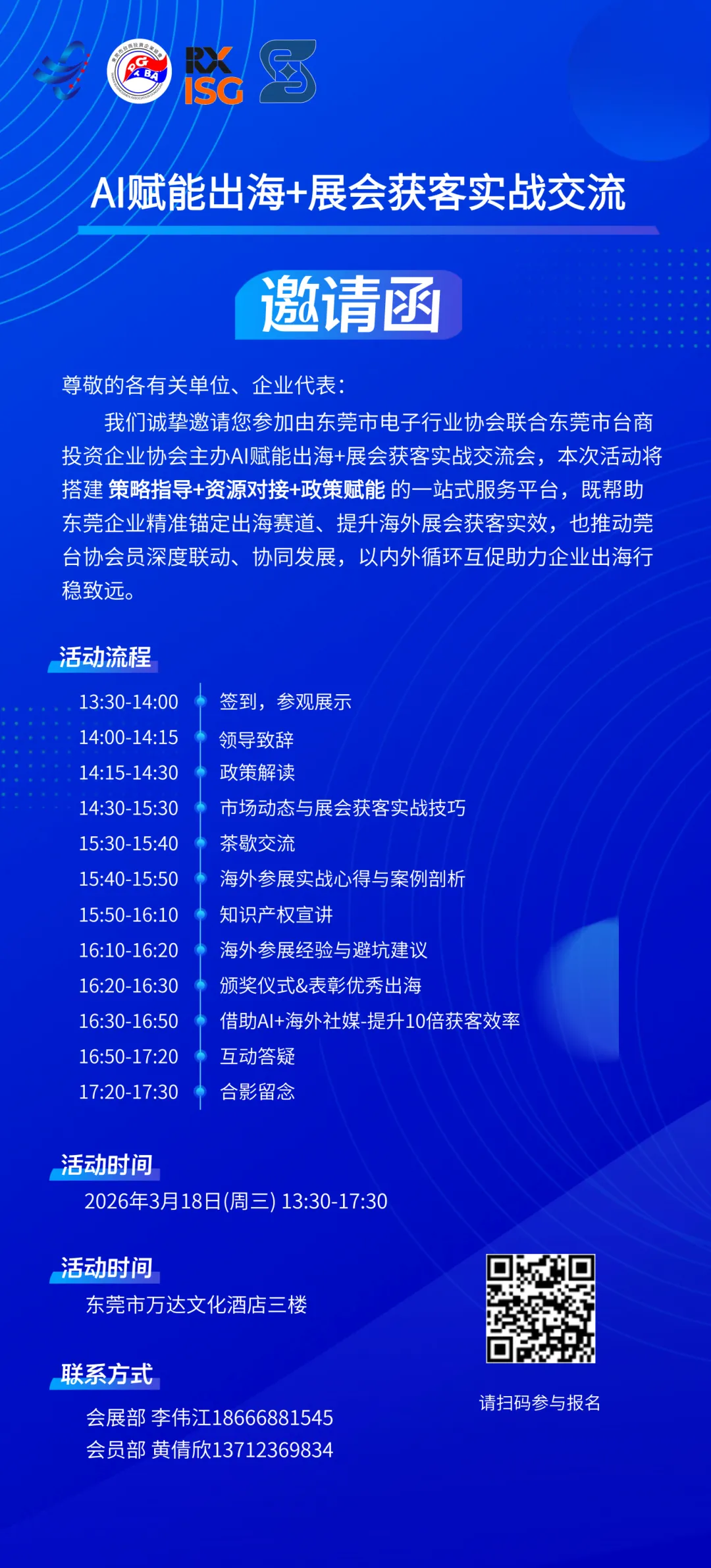 · 报名通道:通过双方协会的企业微信群、公众号发布报名链接(建议用腾讯表单 / 金数据,收集 “企业名称、参会人、职位、联系方式、是否有意向参展”);