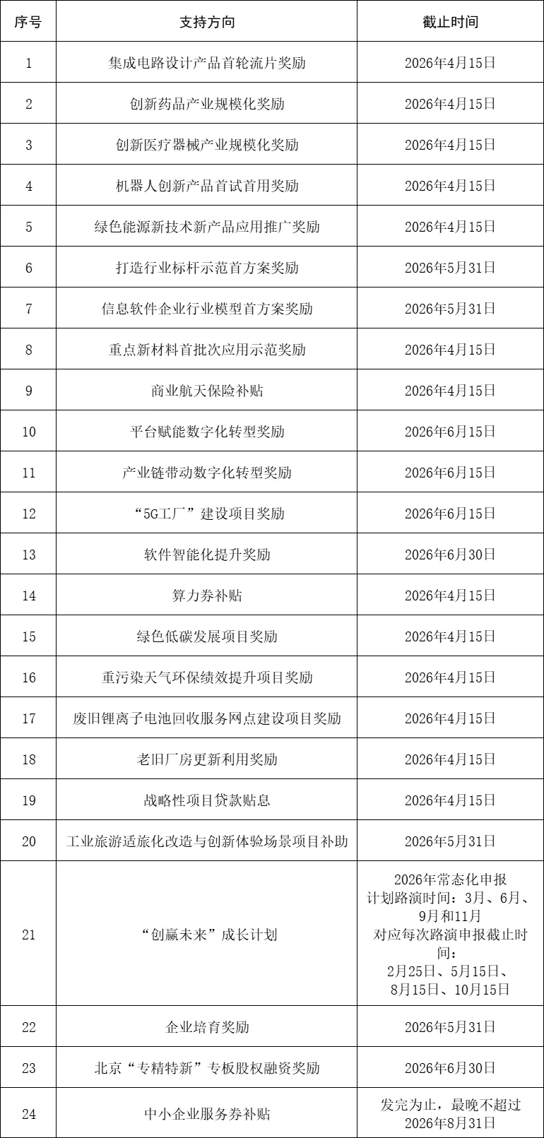 2.符合方向1-21、方向23条件的申报单位可在2026年3月4日至申报截止时间内登录北京市人民政府门户网站“政策兑现”频道(https://zhengce.beijing.gov.cn),选择相对应的项目,按照指引填报相关企业信息及对应材料。