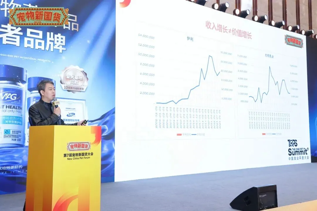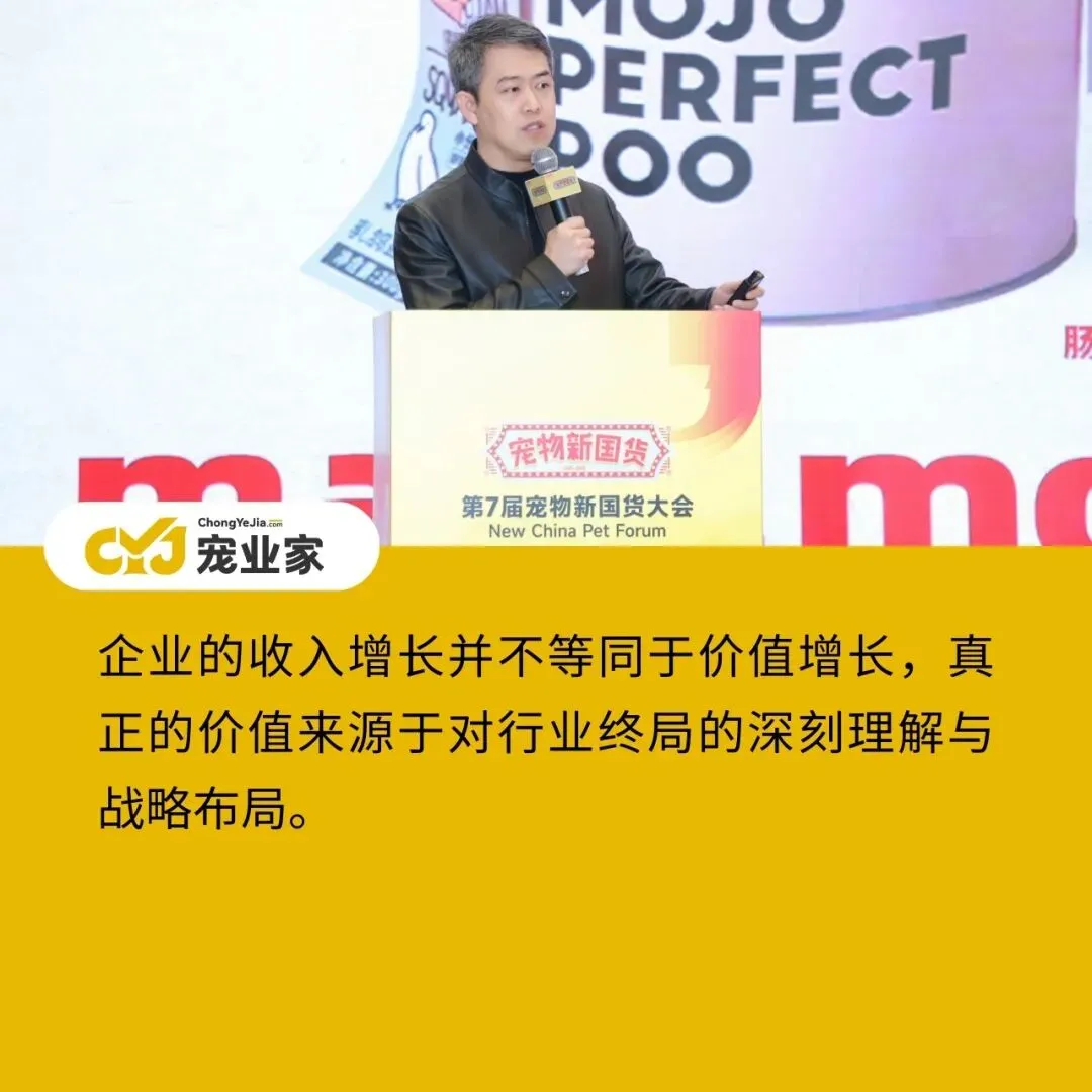 金鼎资本产业研究院院长刘扬在现场分享了《最赚钱的宠物产业基金谈:什么样的宠物公司更值钱?》主题分享,他表示,企业的收入增长并不等同于价值增长,真正的价值来源于对行业终局的深刻理解与战略布局。
