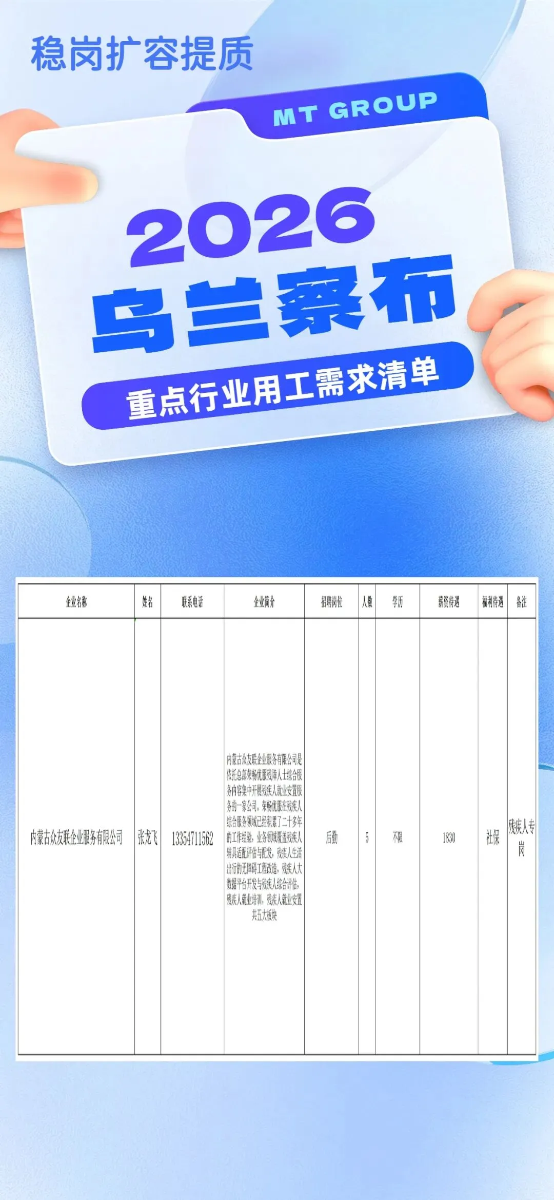 稳岗扩容提质|2026年乌兰察布市重点行业企业用工需求清单(第33期)