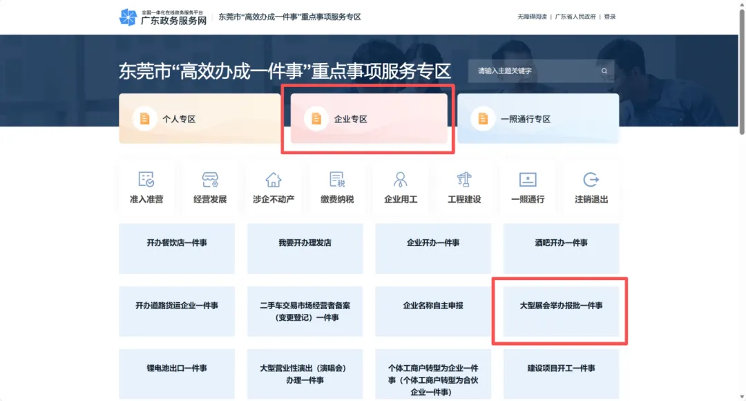为方便企业高效找到大型展会举办报批“一件事”一站式线上服务专区,以下梳理广东政务服务网、“企莞家”两大官方渠道的具体操作路径,企业可根据自身习惯选择对应渠道: