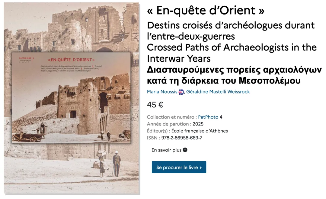 第二项研究以斯特拉斯堡大学的摄影收藏为基础,并结合了法国雅典学院(EFA)及其他合作机构(IFEA、IFPO、DAFA 和贝鲁特圣约瑟夫大学东方图书馆)的档案资料。这些资料的整合揭示了一系列未发表的档案,这些档案见证了20世纪初几十年间活跃的考古活动。在东方考古学蓬勃发展的这一时期,数十处考古遗址和古迹被发掘、研究和修复,从而构建了一个庞大的科学网络,并最终促成了法国在东地中海地区设立研究机构。