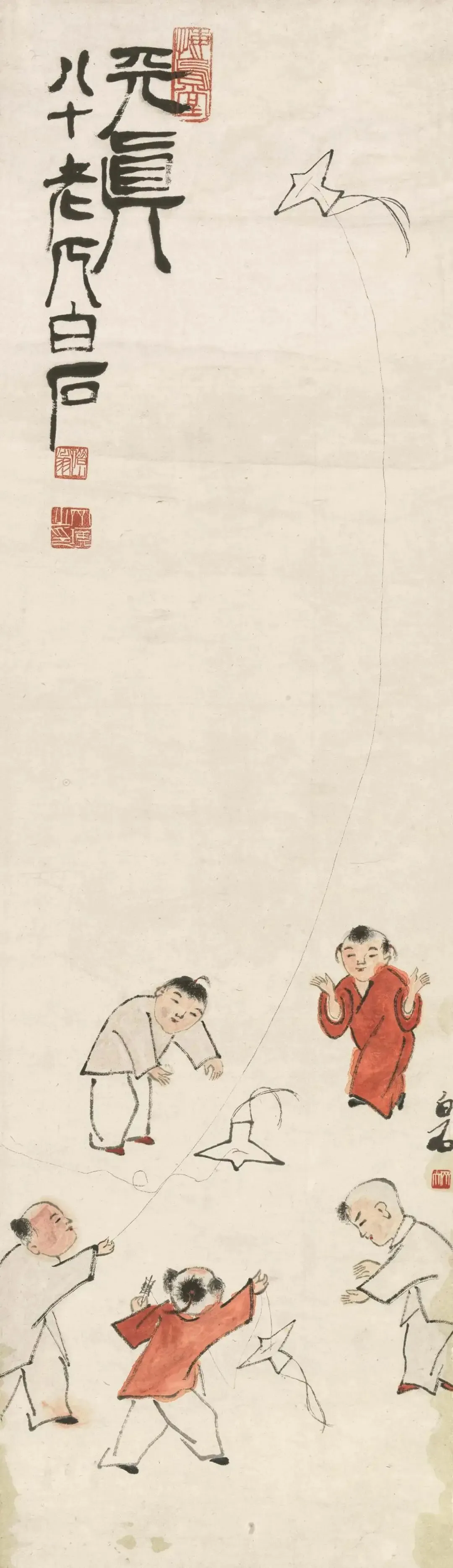 齐白石 《五童纸鸢》