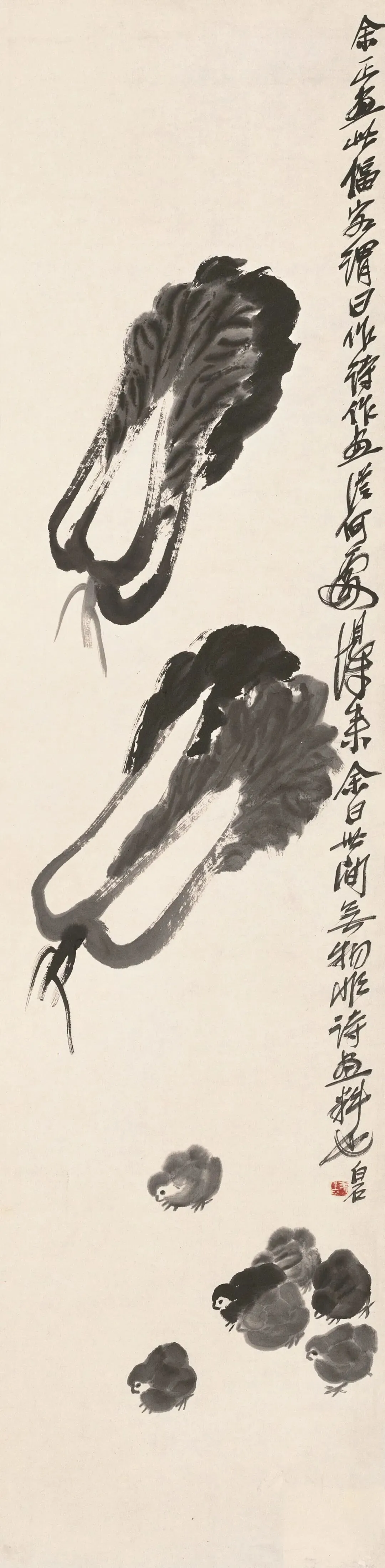 齐白石 《白菜小鸡》