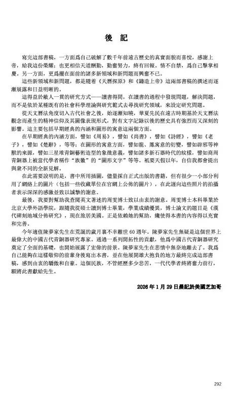 寫完這部書稿,一方面爲自己破解了數千年前遠古歷史的真實面貌而喜悅,感謝上帝,給我這份榮耀;也更相信天道酬勤,勤奮努力,終有回報。情不自禁,爲自己擊掌相慶。另一方面,更爲擺在面前的諸多新領域和新問題而興奮不已。