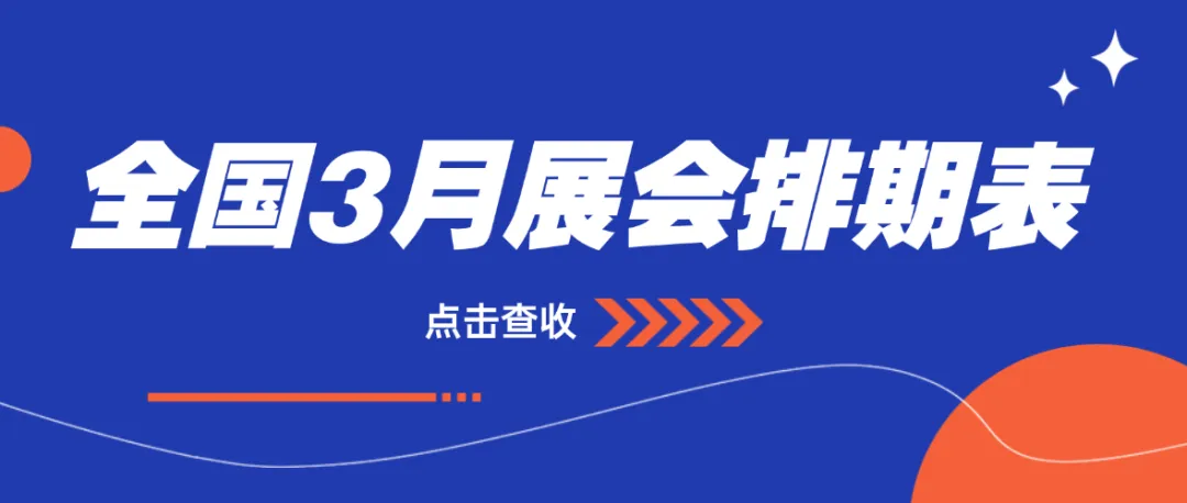 春日展会盛宴来袭!全国3月展会排期表重磅发布啦!无论是行业前沿动态,还是新奇好物,都能在展会中一探究竟。不过要提醒大家,鉴于信息的时效性和准确性可能受多种因素影响,展会举办时间及地点可能会临时变更,请大家理性评估、自行负责!