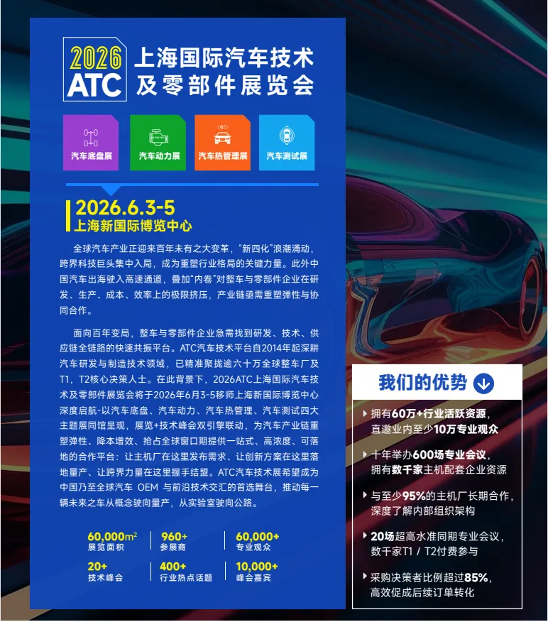 2026ATC上海国际汽车技术及零部件展(简称“2026ATC上海汽配展”)