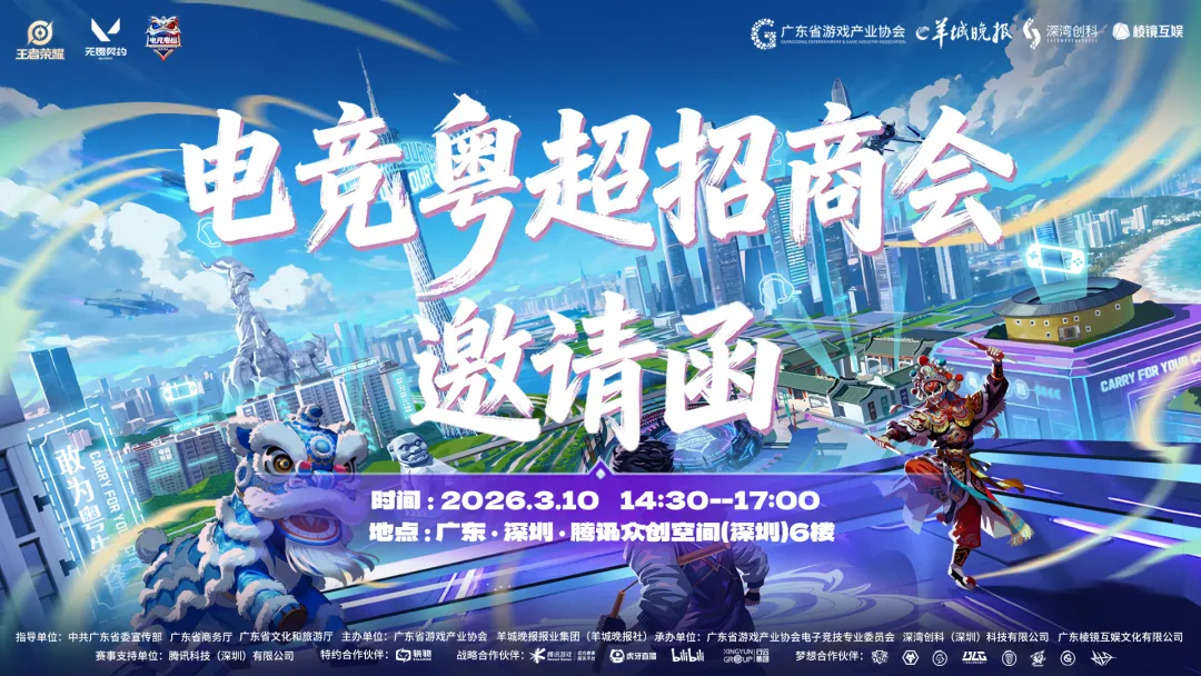 2026年3月10日,邀你共赴这场省级IP红利盛宴,一起把热度变销量、把流量变留量!(修改原文:原定于2026年2月27日举办的电竞粤超招商会,延期至2026年3月10日举办)