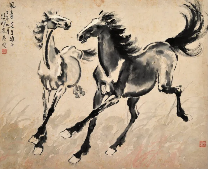 徐悲鸿 双骏图 水墨纸本 68cm×59cm