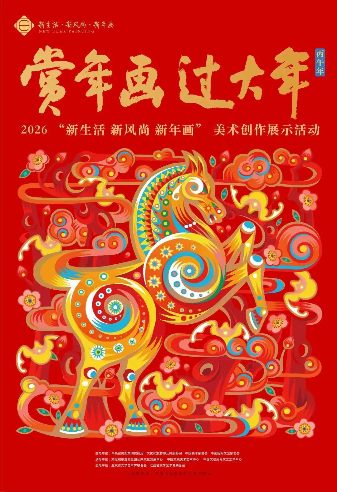 为深入学习贯彻党的二十届四中全会精神,传承弘扬中华优秀传统文化,丰富人民群众节日精神文化生活,激励广大群众振奋精气神、共创新生活,中央宣传部文明实践局、文化和旅游部公共服务司、中国美术家协会、中国民间文艺家协会联合举办了2026年“新生活·新风尚·新年画”美术创作展示活动。
